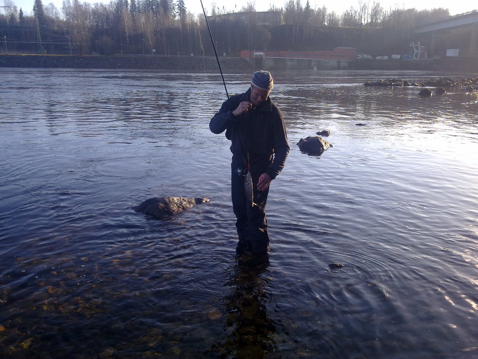 Det blev knappa 2kg i topp i dag och "bara" 19 fiskar vi tappade helt bort fisken efter lunch. jag ligger nu på retliga 381 havsöringar i år så det kommer säker ett par rapporter till från älven för målet är ställt på 400. men i morgon är det pimpel. kolla in det i morgon.Det blir lite kass kvalite på filmerna men de går att se och bara föra den där dialekten är underbart.
